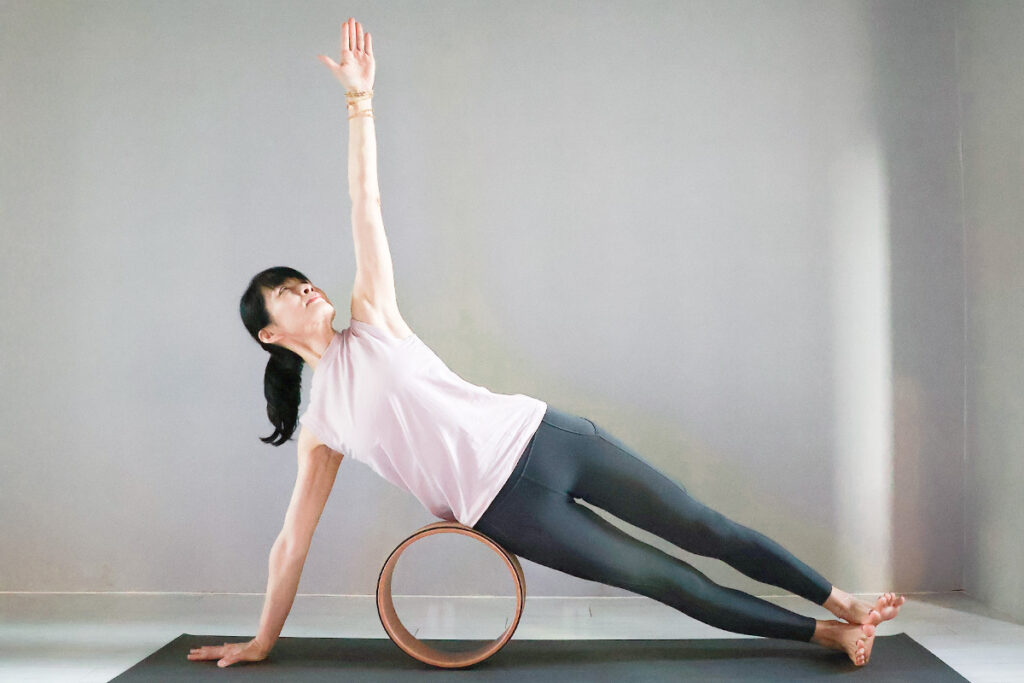 這堂課專注於身體中軸的旋轉與核心穩定。透過流暢的扭轉體式,加上瑜珈輪的輔助,能溫和地「按摩」腹部器官,幫助排除累積的沉重感並促進消化循環。這不只是為了鍛鍊出緊緻的馬甲線,更是從源頭啟動身體的代謝引擎,讓你由內而外感受輕盈。