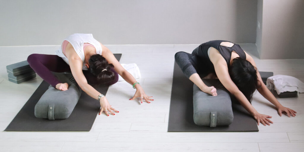 – 準備輔助道具:瑜珈磚、毛毯、抱枕