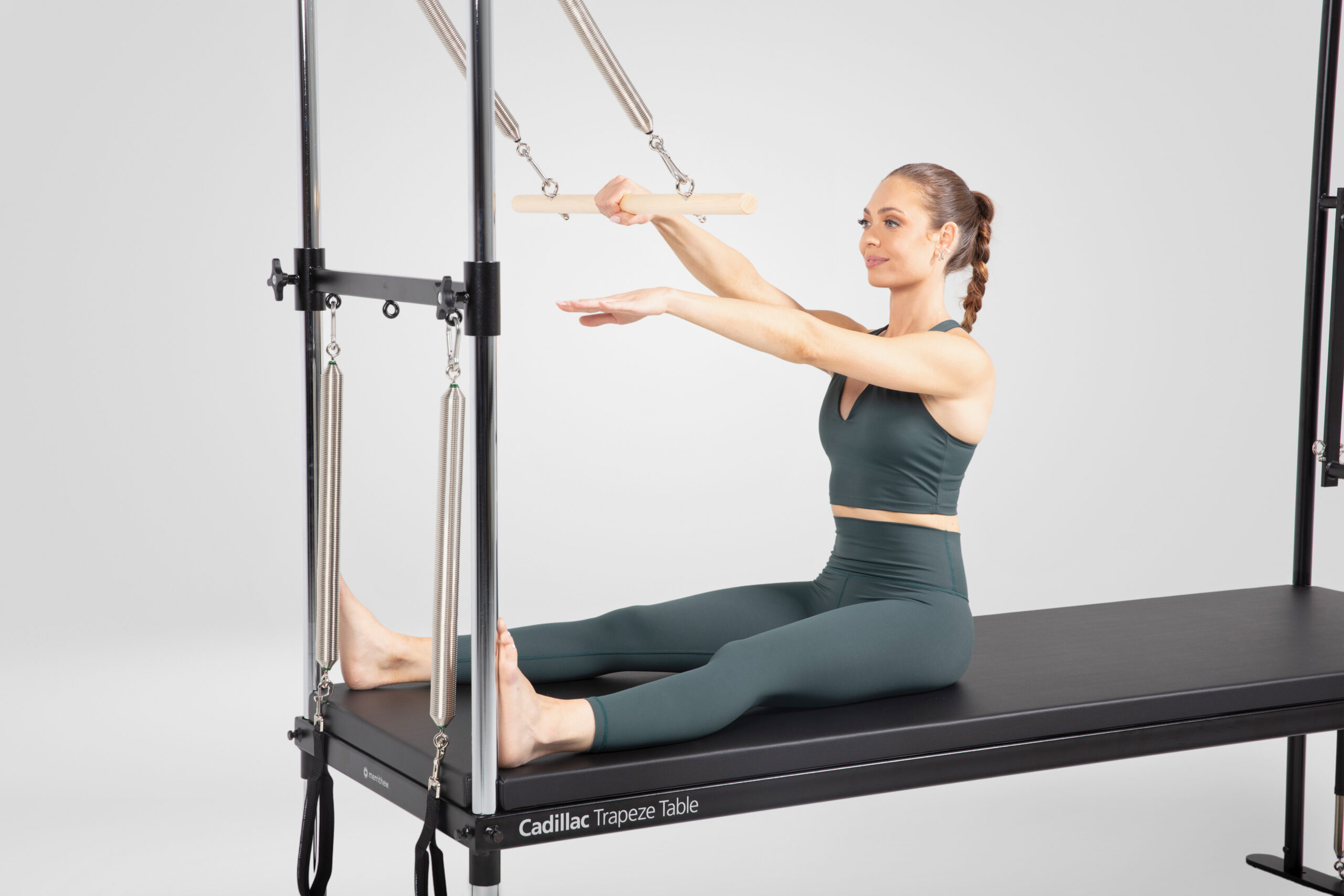 - 全套初級和中級動作中的許多鍛鍊都在凱迪拉克鞦韆床上進行