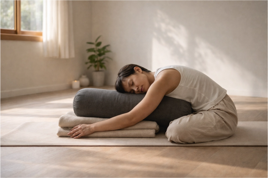 – 善用輔助道具:瑜珈磚、毛毯、抱枕等支撐物可減少代償、保持正確姿勢,讓停留更安全舒適。